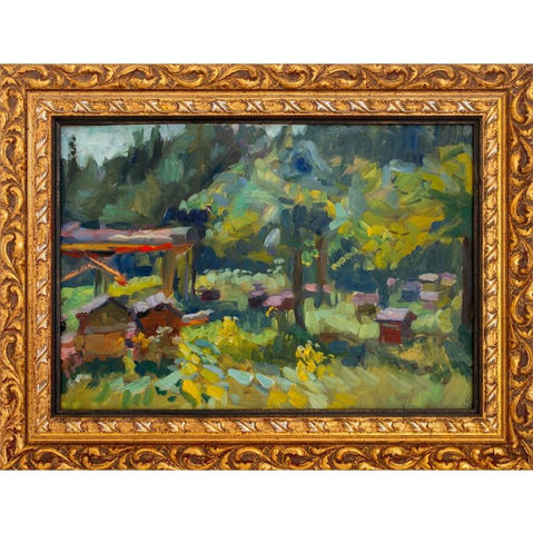 An excellent example of Russian impressionism, the late Fedor Kascheev’s oil painting, entitled “Apiary,” was created in 1958. Viewers can easily spot the bee hives amid the flowers and tall grass which the title refers to. The painting conveys the serenity of a traditional Russian garden which one might find in a suburban dacha near a small city. This work, from the estate of a New York-based diplomat, was acquired by The Martin Art Trust at the Showplace auction house in Queens, NY in early 2025.