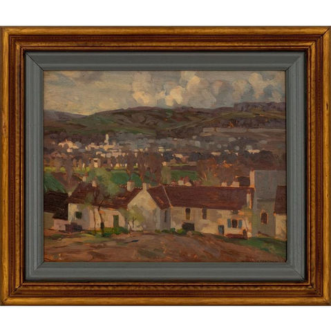 This work, entitled “Village Scene” depicts the monochromatic nature of a small town in the American southwest. It was created by Manville Chapman, an artist most known for his impressionistic landscapes and village scenes from his native New Mexico. Although his work is mostly collected by local aficionados, this charming oil painting came up for sale at a New York-based auction house in January, 2025, where it was acquired by The Martin Art Trust.